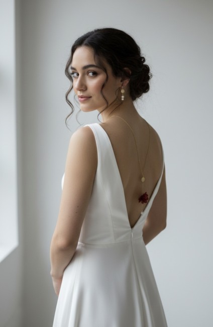 Collier de dos nu amovible- pendentif bourgeon de rose façonné main- chaînes de dos- bijoux de mariée tendance et romantique.