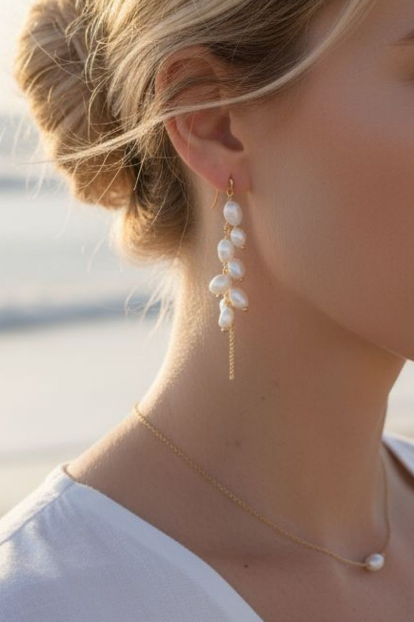 Ces délicates boucles d’oreilles pendantes sont ornées de véritables perles de culture de forme irrégulière, qui séduisent par leur éclat naturel et leur charme authentique.