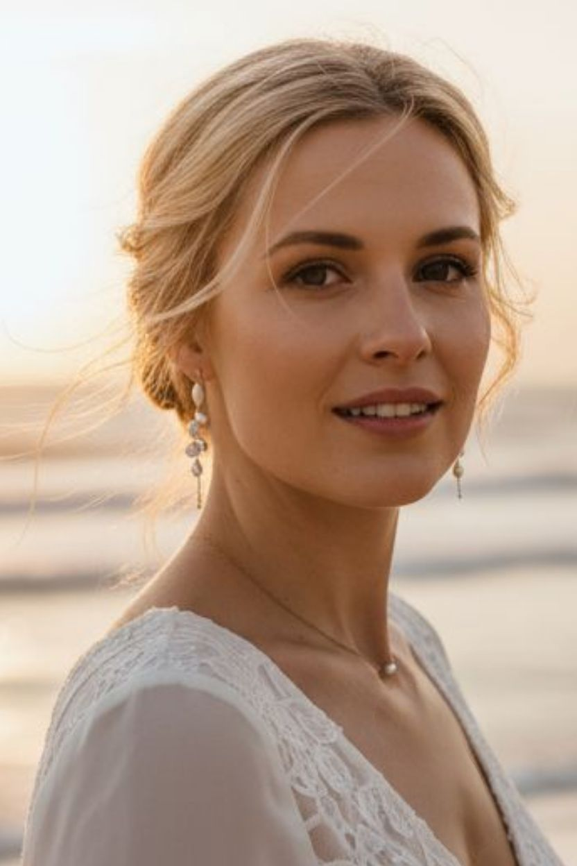Ces boucles mettront en valeur la beauté du visage et s’associeront à merveille avec un collier de perles ou un bijou de dos délicat.
