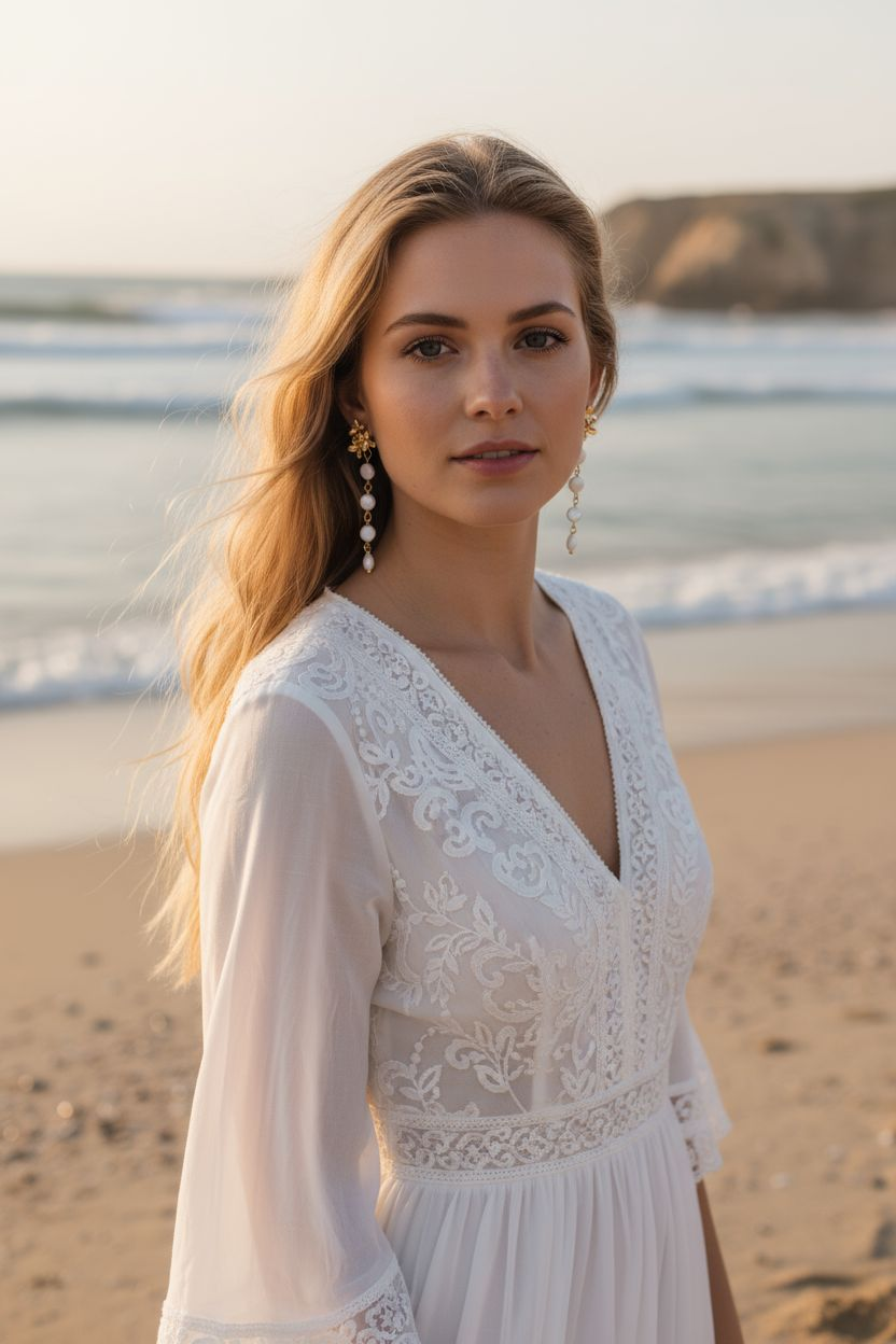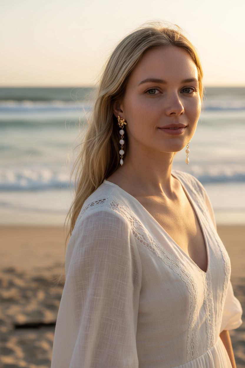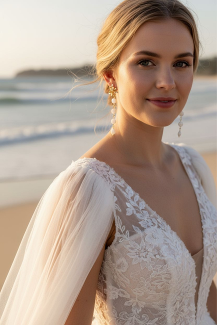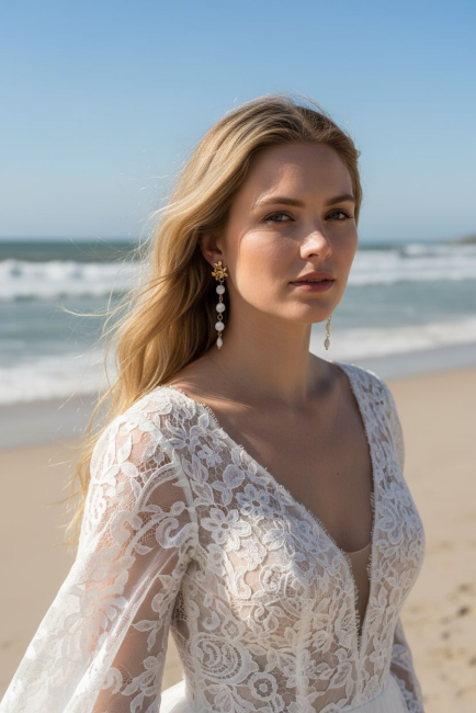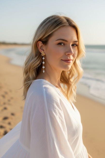 Ces boucles d'oreilles au charme élégant et raffiné ont été conçues pour mettre en valeur une tenue de mariée, leur éclat blanc naturel encadrera votre visage pour mieux le mettre en valeur.