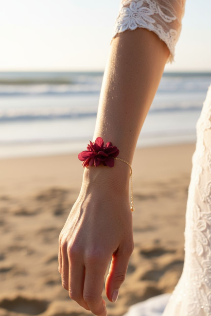 GINKO- Joli bracelet de mariée tendance chic et zen avec Ginko et perle nacrée Swarovski blanc naturlel.