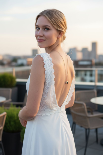 Ce beau collier de dos est une pièce spécialement réalisée pour sublimer les mariées et demoiselles d'honneur en quête d’une touche d’élégance intemporelle.