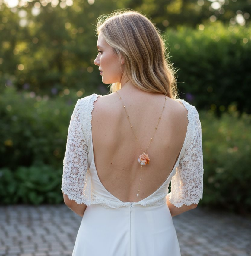 Plongez dans la délicatesse et la chaleur des teintes chaudes avec le collier Amor – un bijou de dos raffiné qui sublime votre silhouette avec élégance et légèreté. Pensé pour habiller le creux du dos avec grâce, il s’enfile simplement par la tête, sans fermoir, offrant un tombé fluide et naturel.