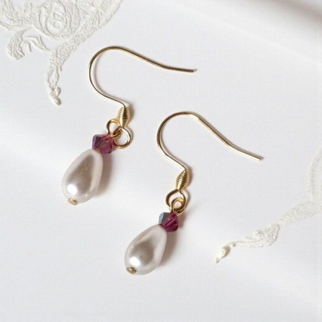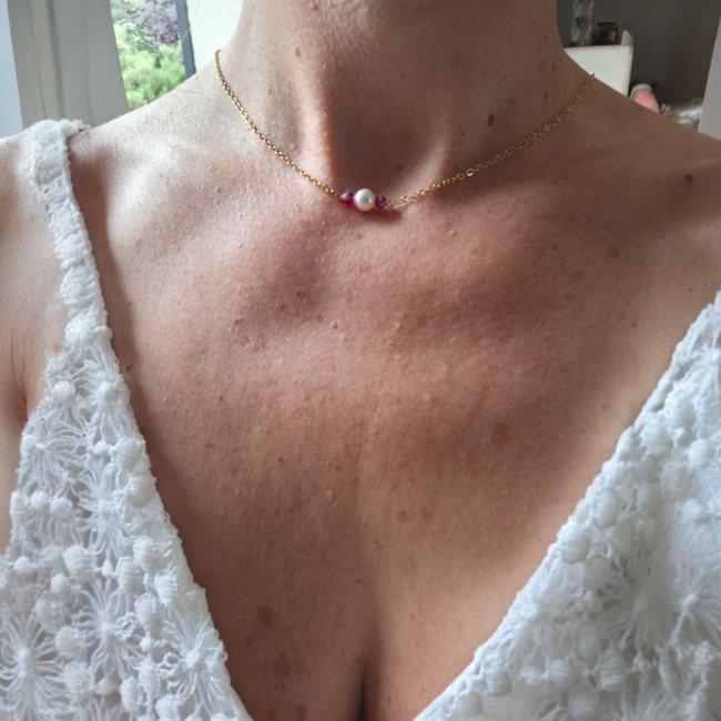 Perles nacrées blanches et perles fuchsia en cristal Preciosa