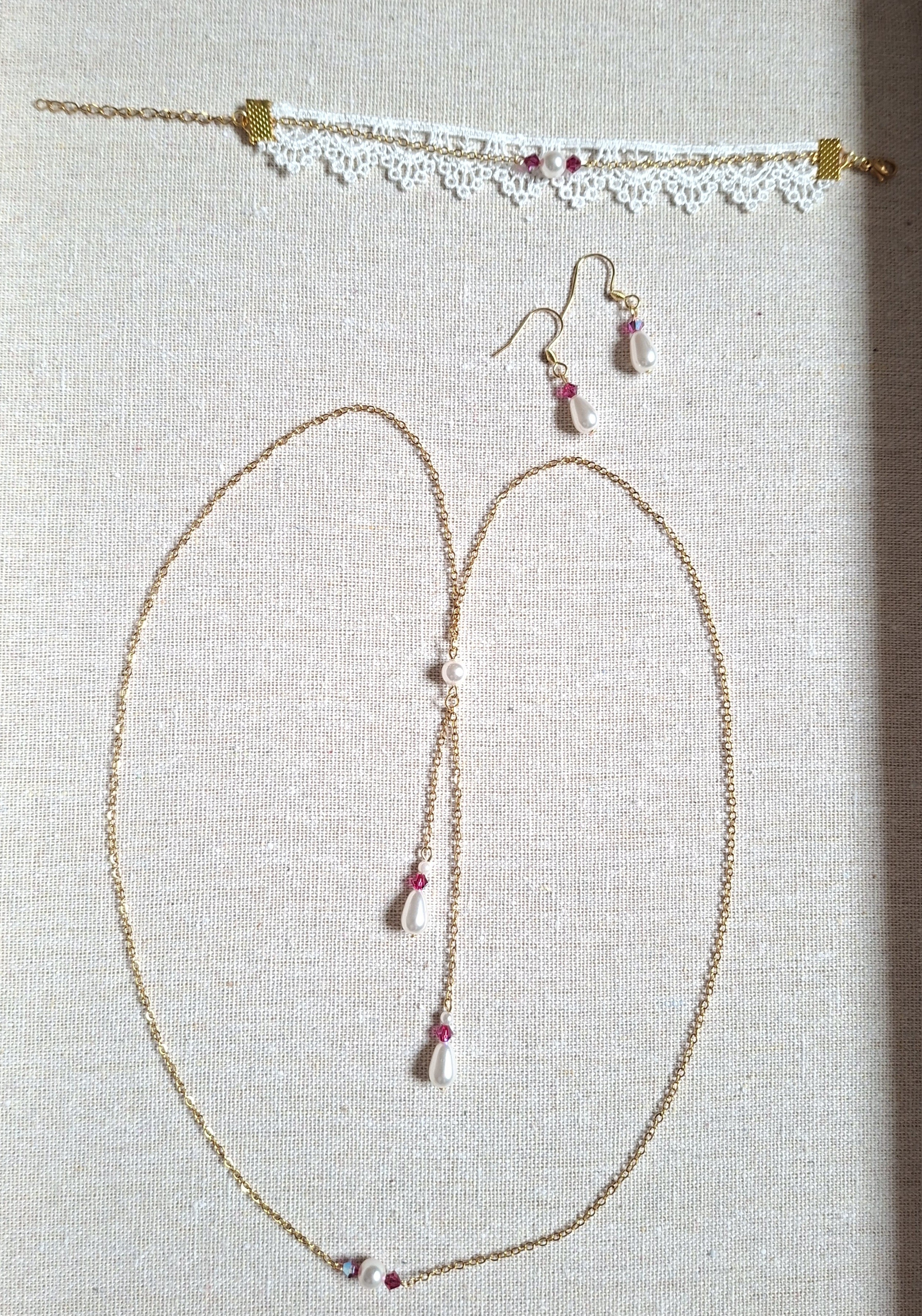 - Bracelet dentelle et chaîne : ajustable de 16 à 20 cm