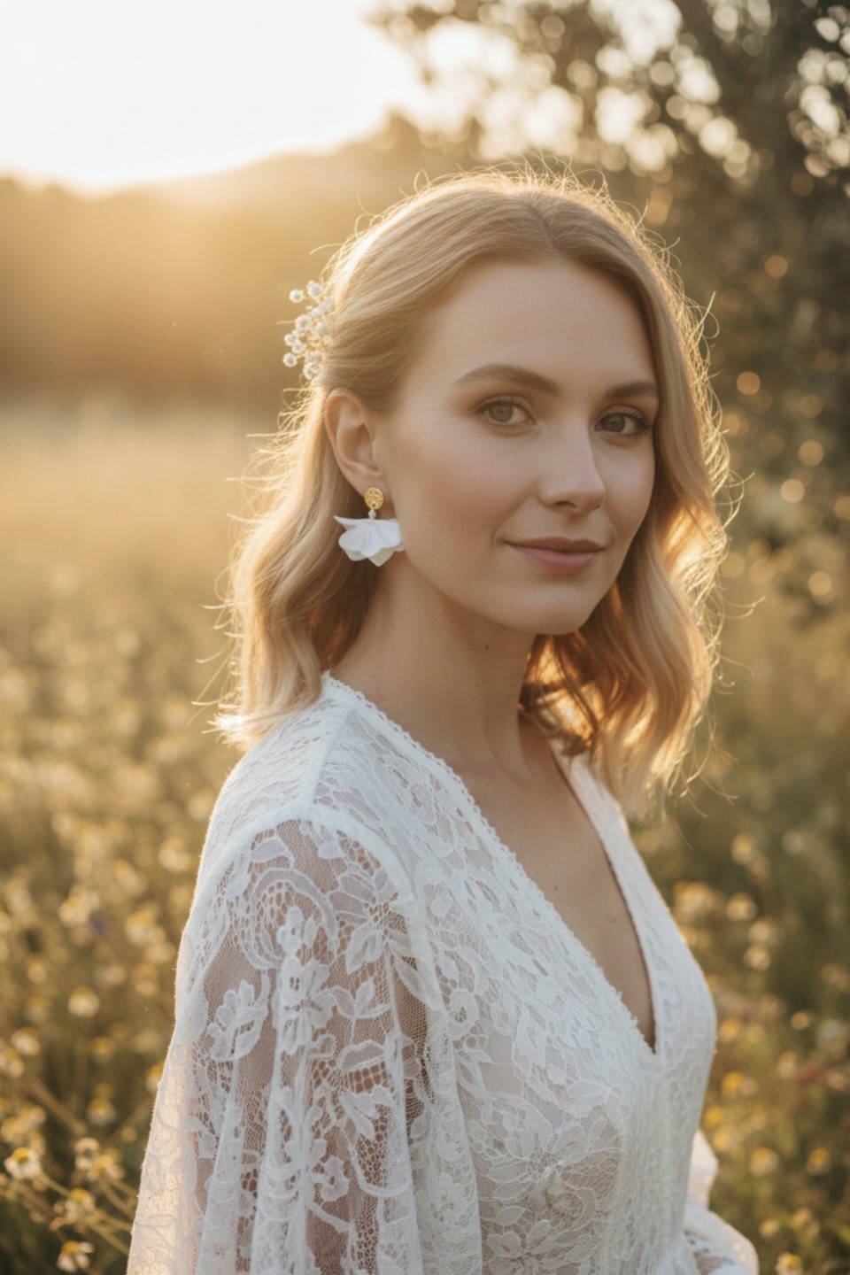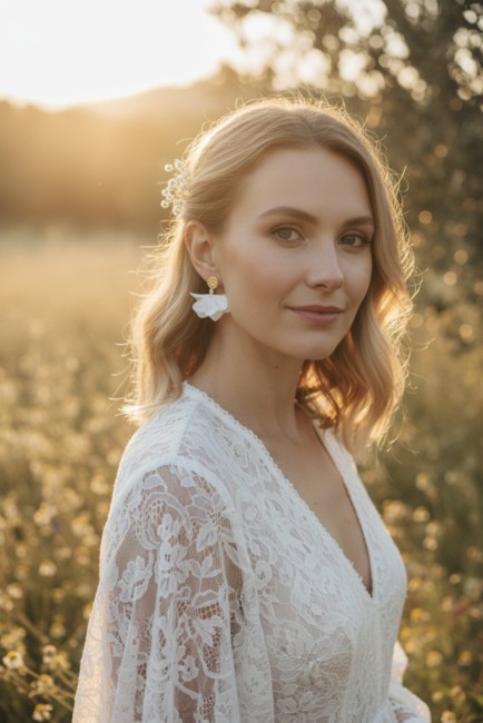 Ces boucles d’oreilles sont légères, confortables à porter toute la journée et parfaitement adaptées aux mariages d’inspiration romantique, bohème ou poétique.