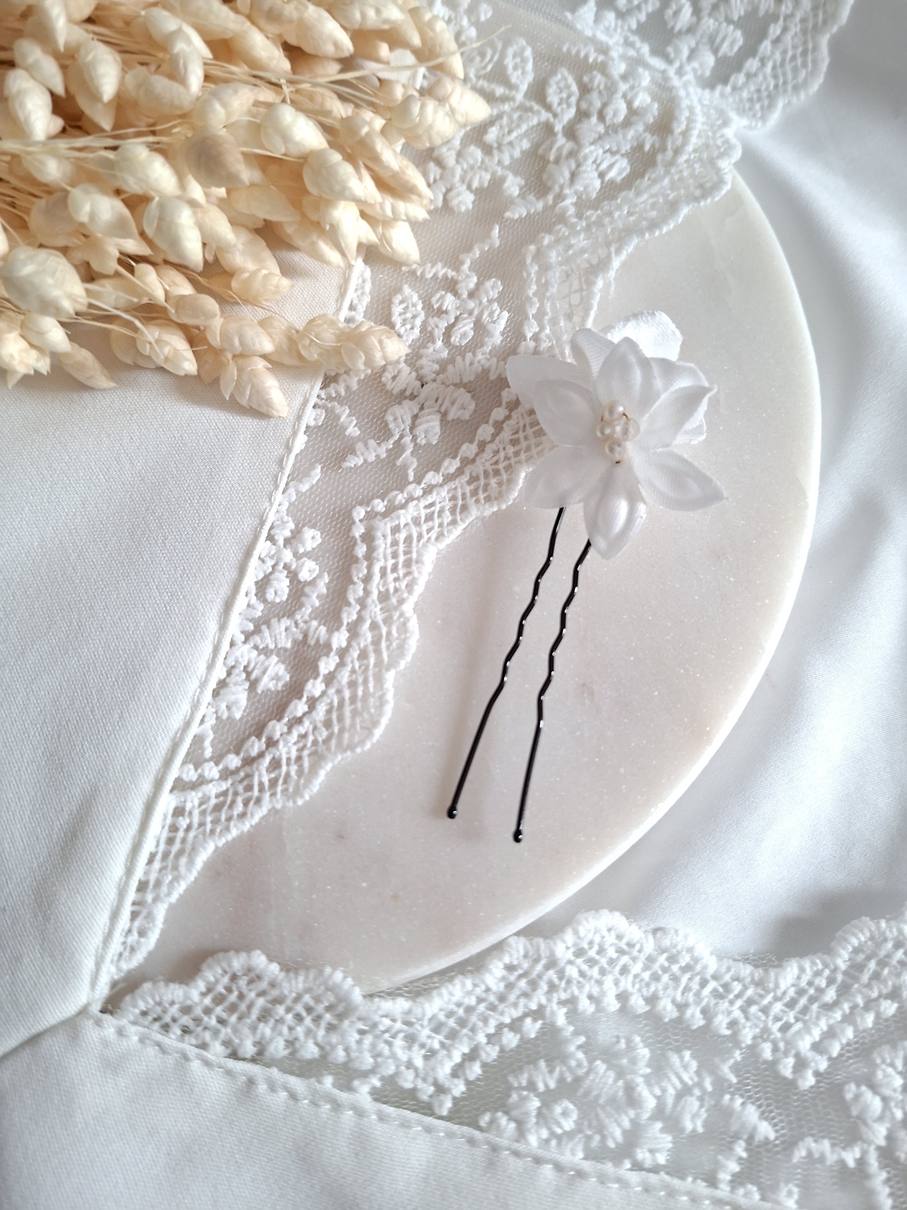 • Petites fleurs en tissu blanc, formes et tailles variées