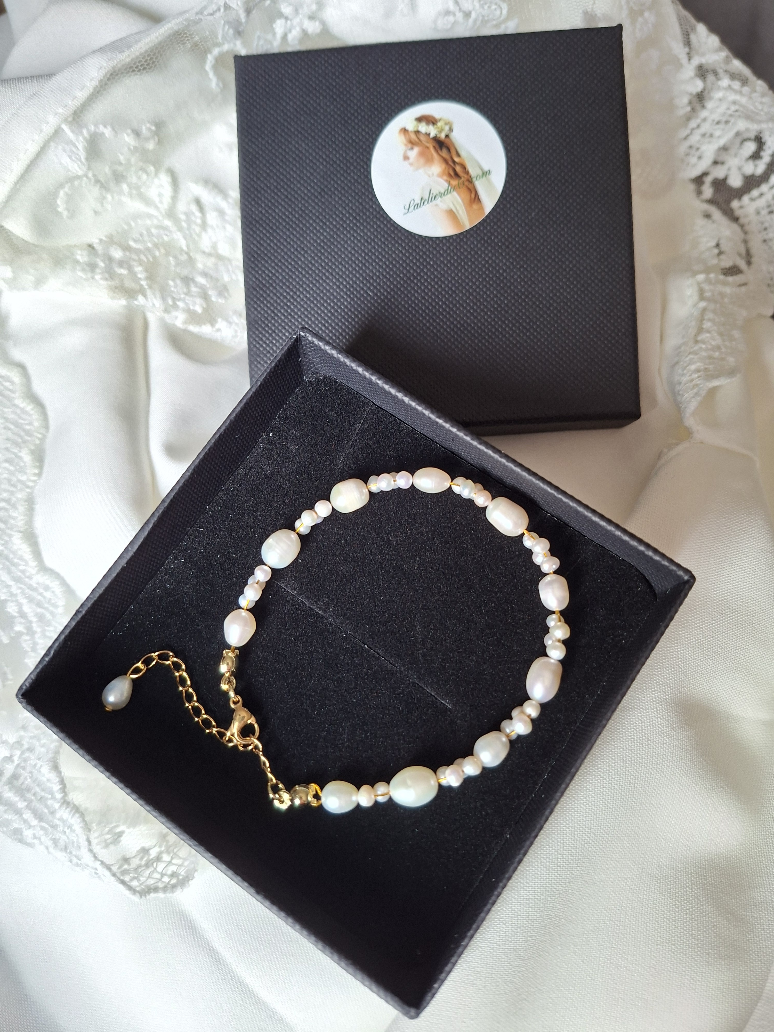 Chaque perle, choisie avec soin, présente une forme légèrement irrégulière, ce qui lui donne tout son charme et son caractère. Ces petites différences naturelles rendent chaque bracelet unique et apportent une touche organique, presque poétique, au bijou.