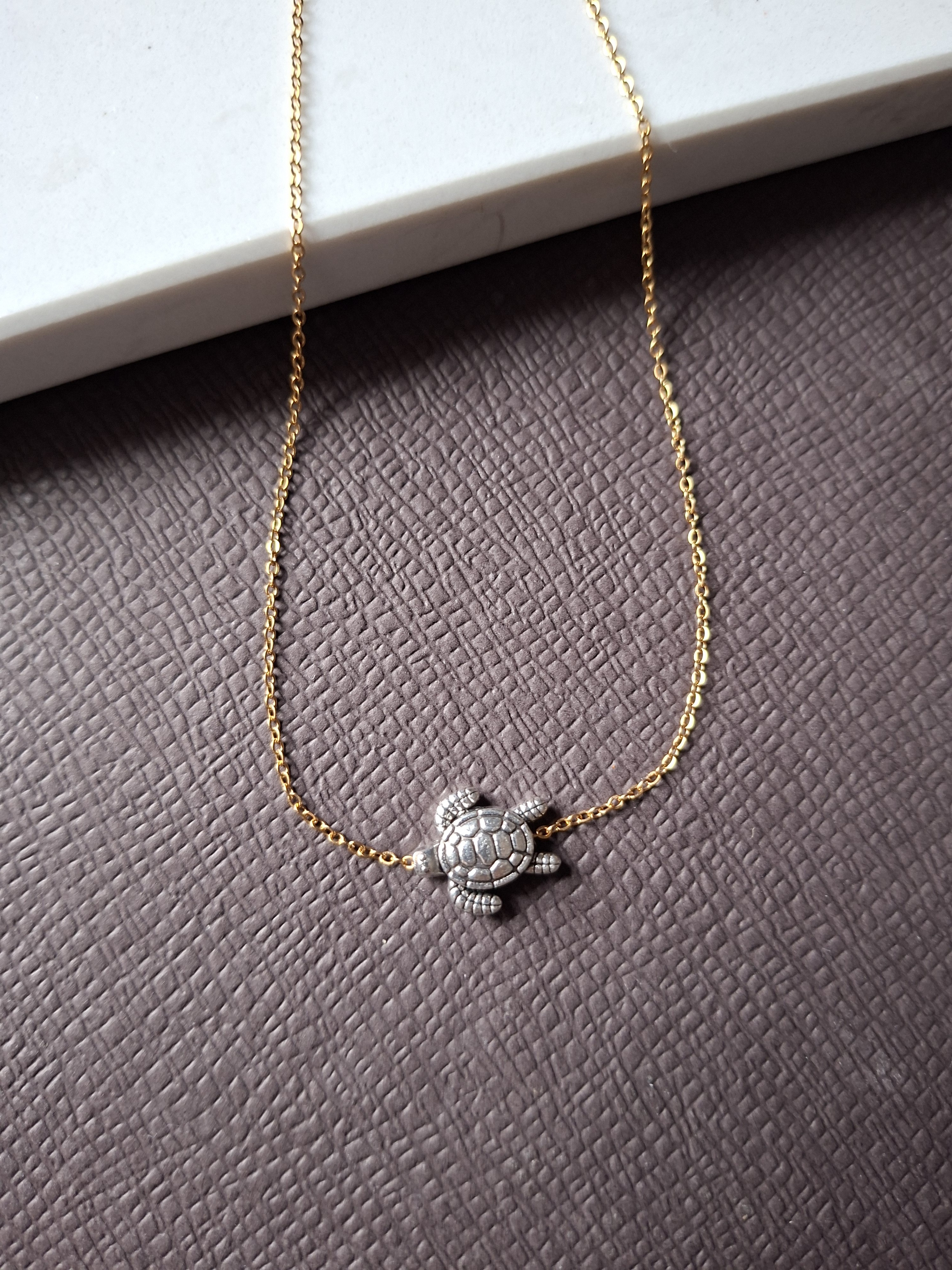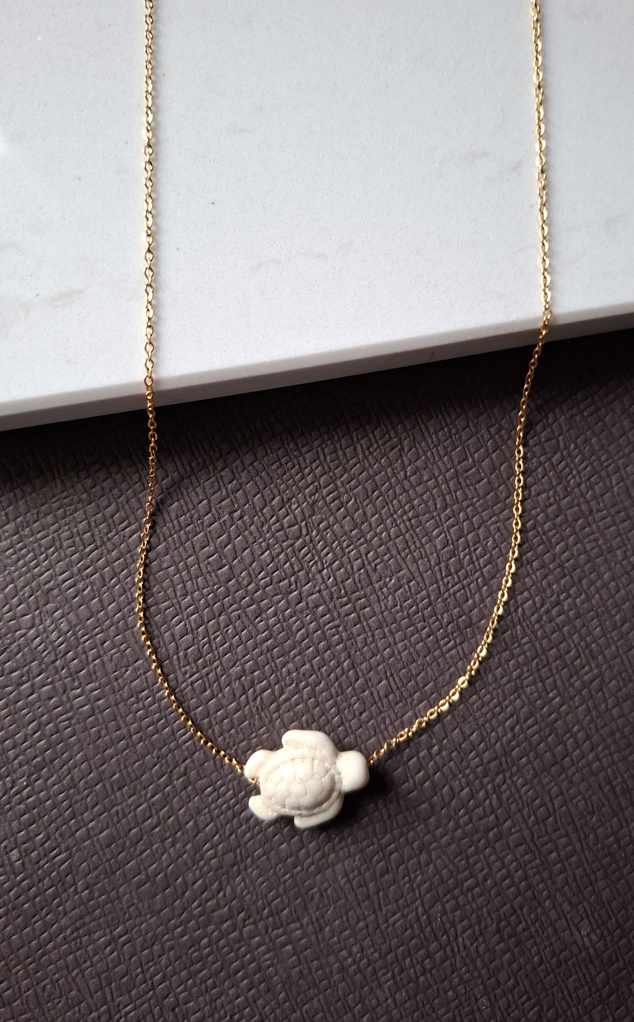Collier avec pendentif tortue de mer- animaux marins.Finition argent, turquoise ou crème.