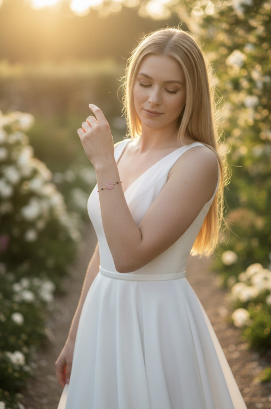 Romantique, léger et intemporel, il accompagne idéalement les tenues de mariage, de cérémonie ou vos moments précieux du quotidien.