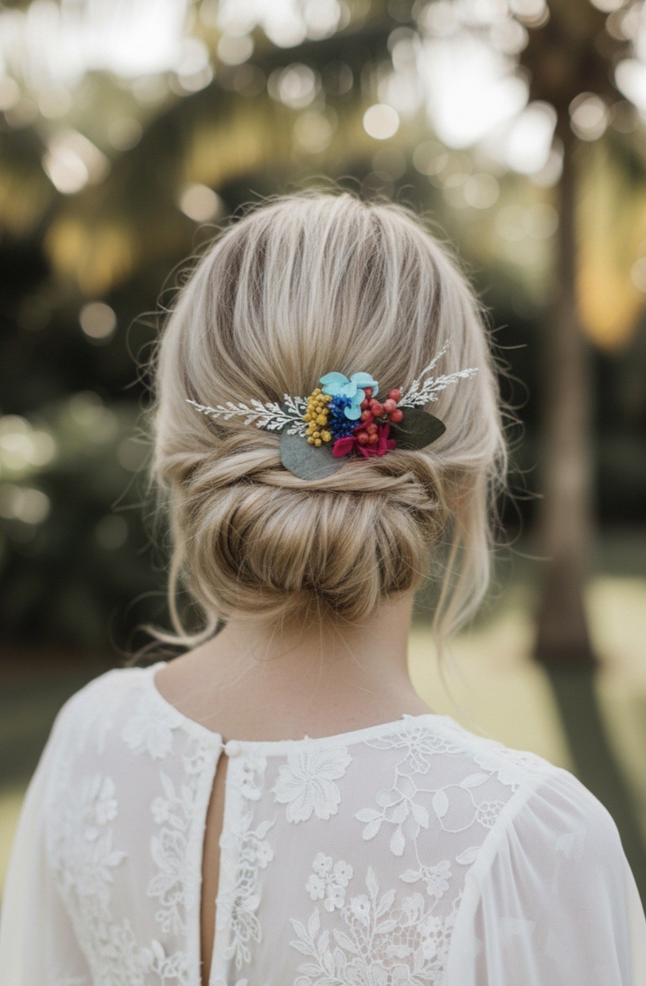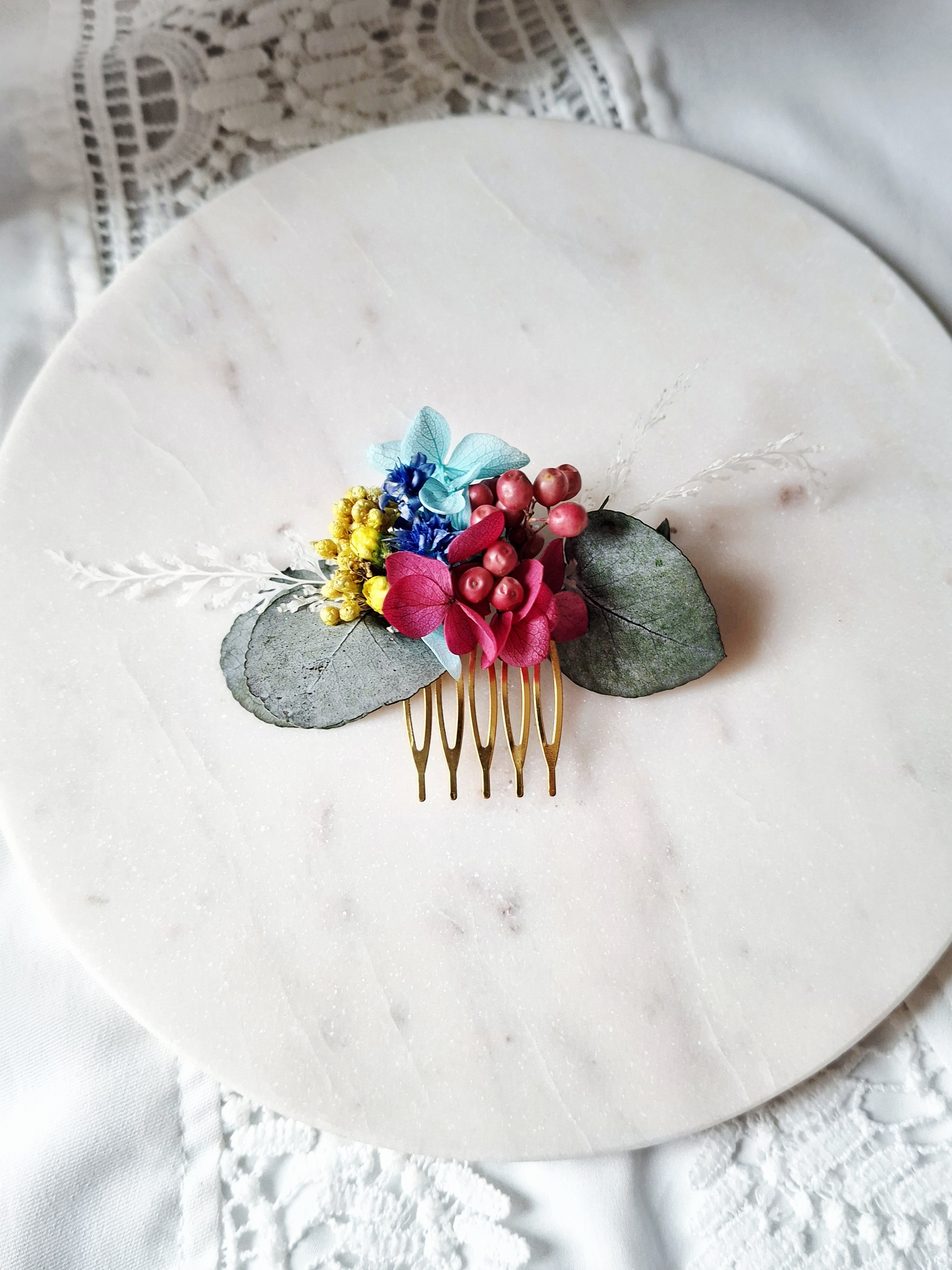 Peigne de fleurs préservées couleurs vibrantes- accessoire de mariée- chignon bohème-