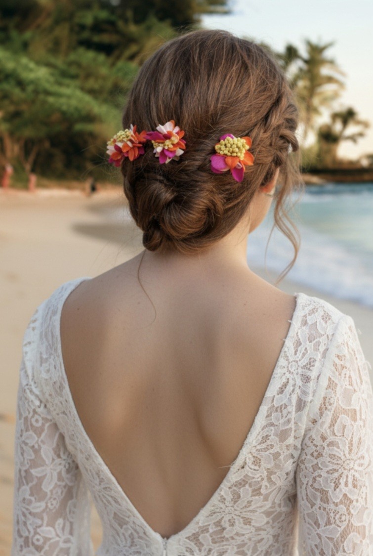 Trois pics de cheveux pour agrémenter un chignon, une tresse ou une coiffure de mariée, demoiselle d’honneur ou témoin.