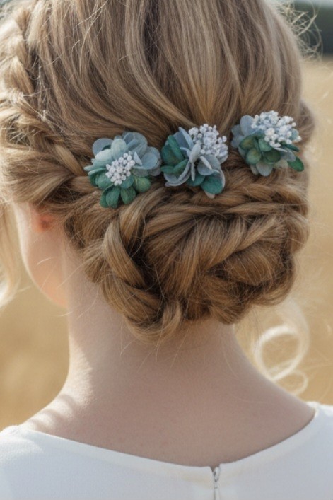 Je vous conseille les 3 pics à chignon assortis pour compléter votre tenue.