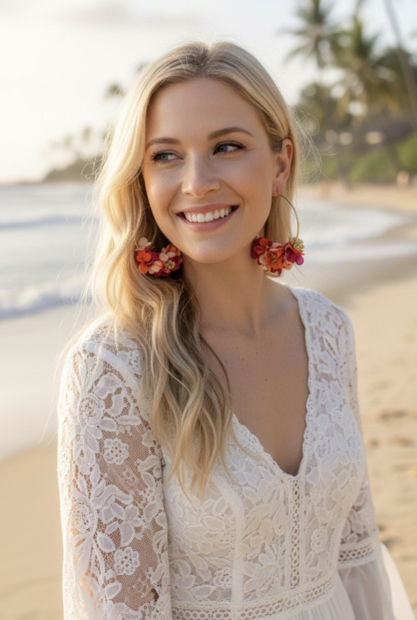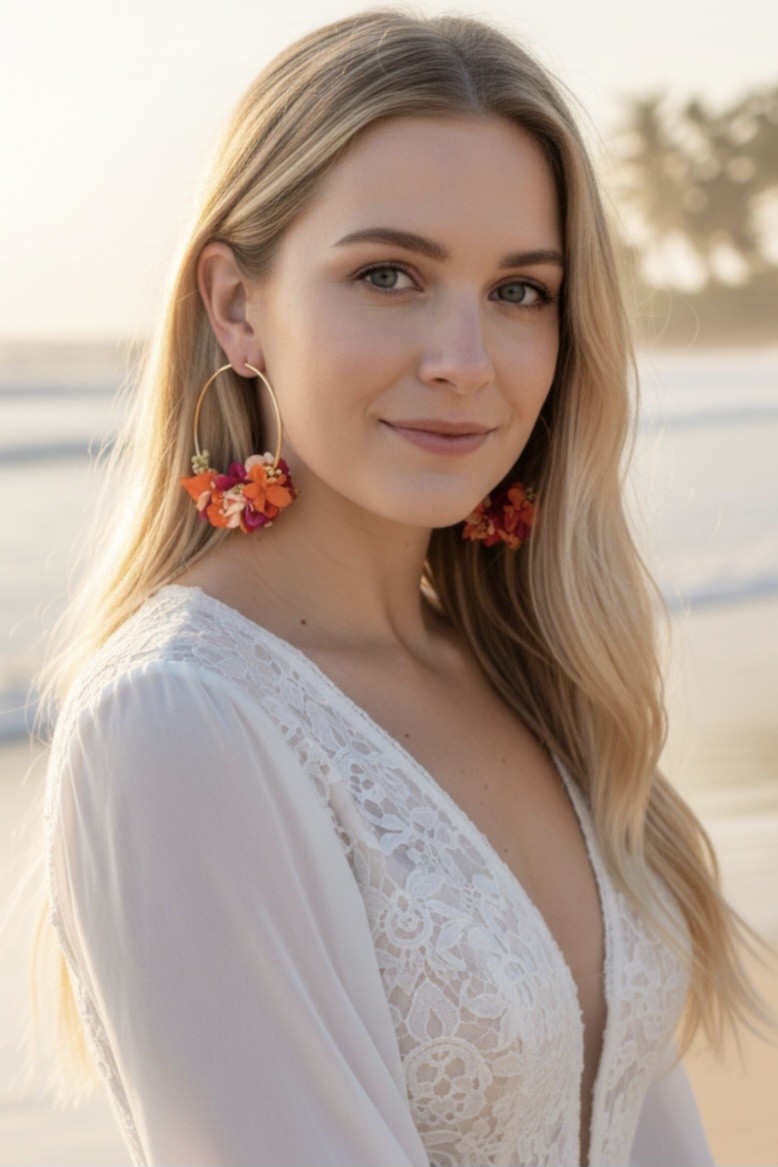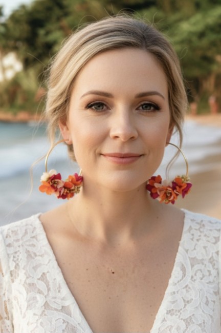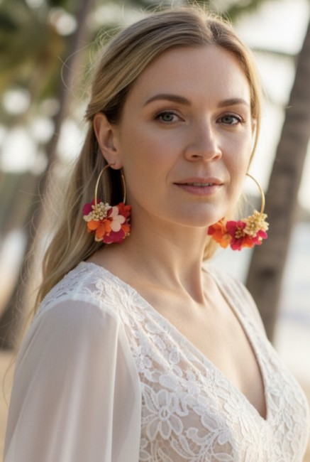 Créoles fleuries pour mettre en valeur une tenue de mariée ou témoin.