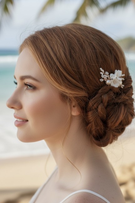 Idéal pour orner un chignon bas, une demi-attache ou une coiffure bohème, ce bijou de cheveux s’intègre parfaitement à une tenue de mariage, de cérémonie ou à un événement spécial.