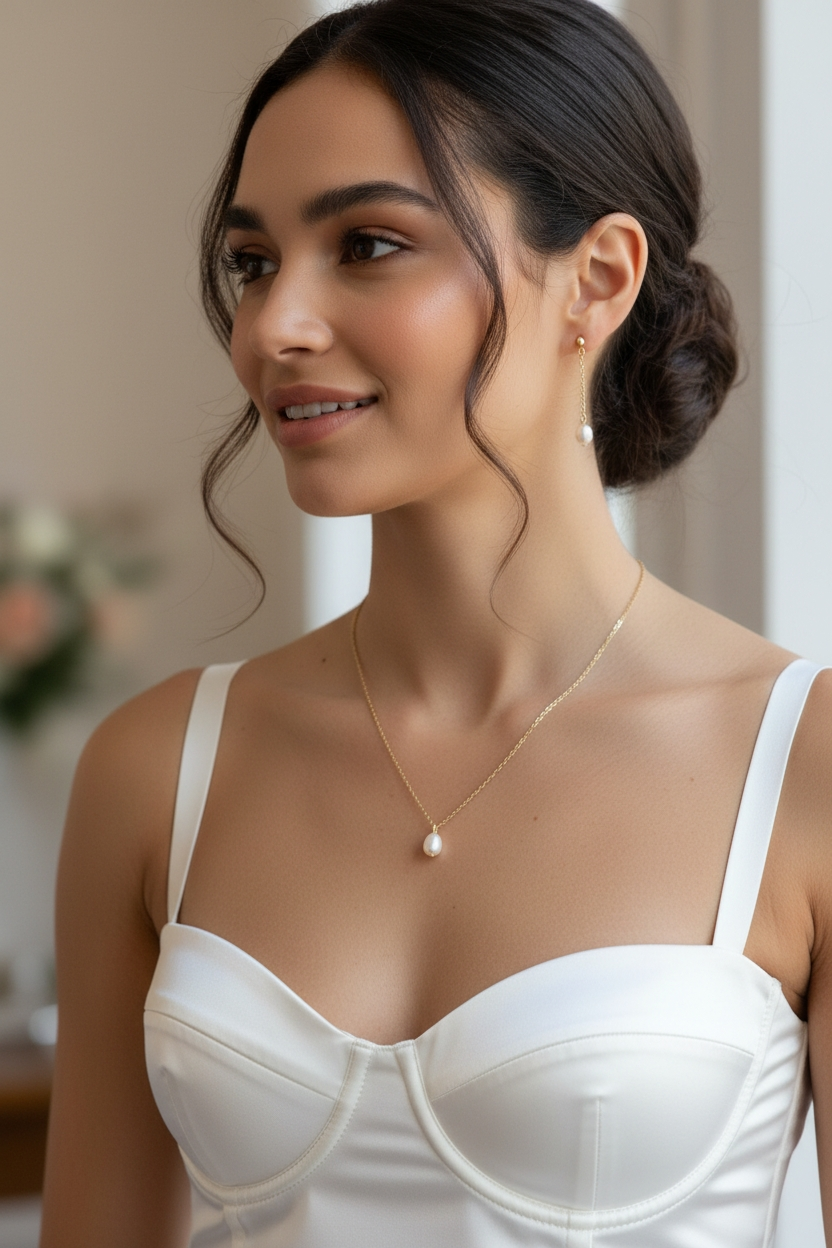 Leur design délicat et aérien met en valeur le port de tête sans alourdir la silhouette. Ces pendants apportent une touche de raffinement tout en restant discrets, parfaits pour une mariée romantique, bohème, chic ou minimaliste. Ils se marient aussi bien avec un chignon élégant qu’avec une coiffure lâchée ou semi-attachée.