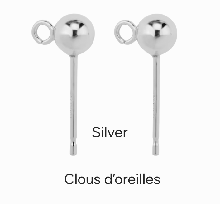 Les perles sont montées sur de petits clous en acier inoxydable, disponibles en finition argent épuré ou doré, pour s’adapter harmonieusement à votre style, votre robe et vos autres accessoires. L’acier inoxydable est apprécié pour sa durabilité, sa résistance à l’oxydation et son confort au quotidien, même pour les peaux sensibles.