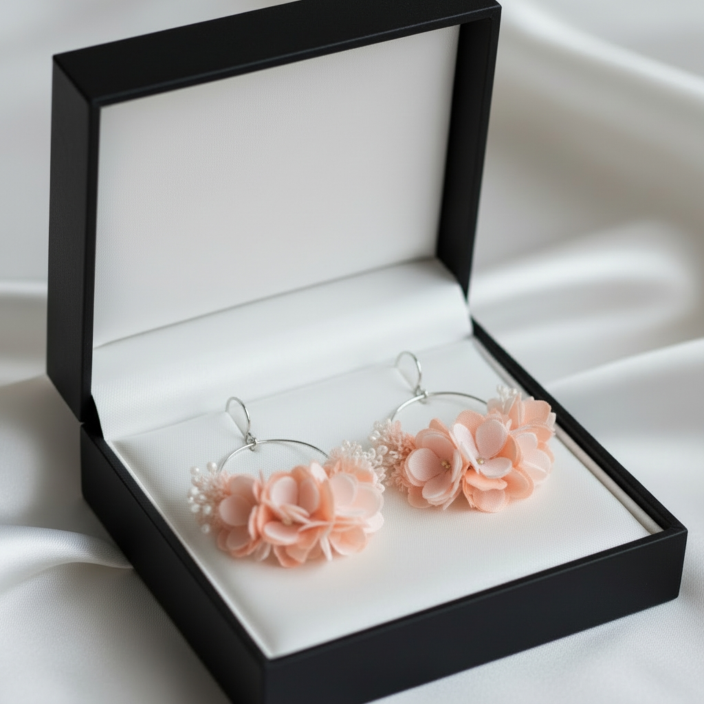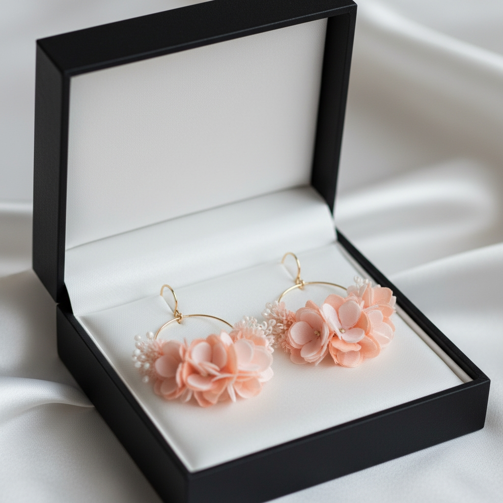 Créées avec passion dans l’atelier, chaque paire est unique. Les fleurs naturelles pouvant légèrement varier, votre bijou conserve tout son charme authentique et artisanal.