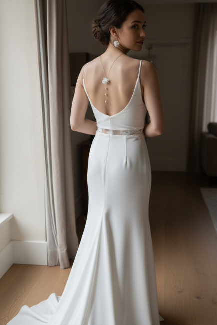 Facile à enfiler par la tête, ce bijou de dos floral épouse harmonieusement la silhouette et accompagne les mouvements sans alourdir la tenue. Il s’accorde parfaitement avec une robe épurée comme avec une création plus travaillée, en apportant une signature raffinée et intemporelle.