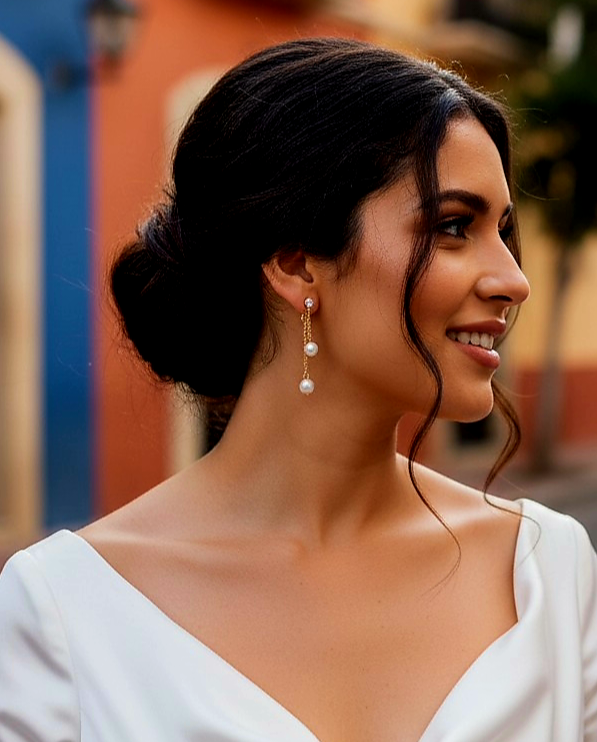 Parfaites pour un mariage chic, bohème ou moderne, ces boucles d’oreilles mariée apportent lumière au visage tout en conservant une élégance discrète.