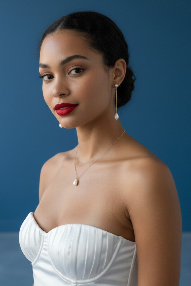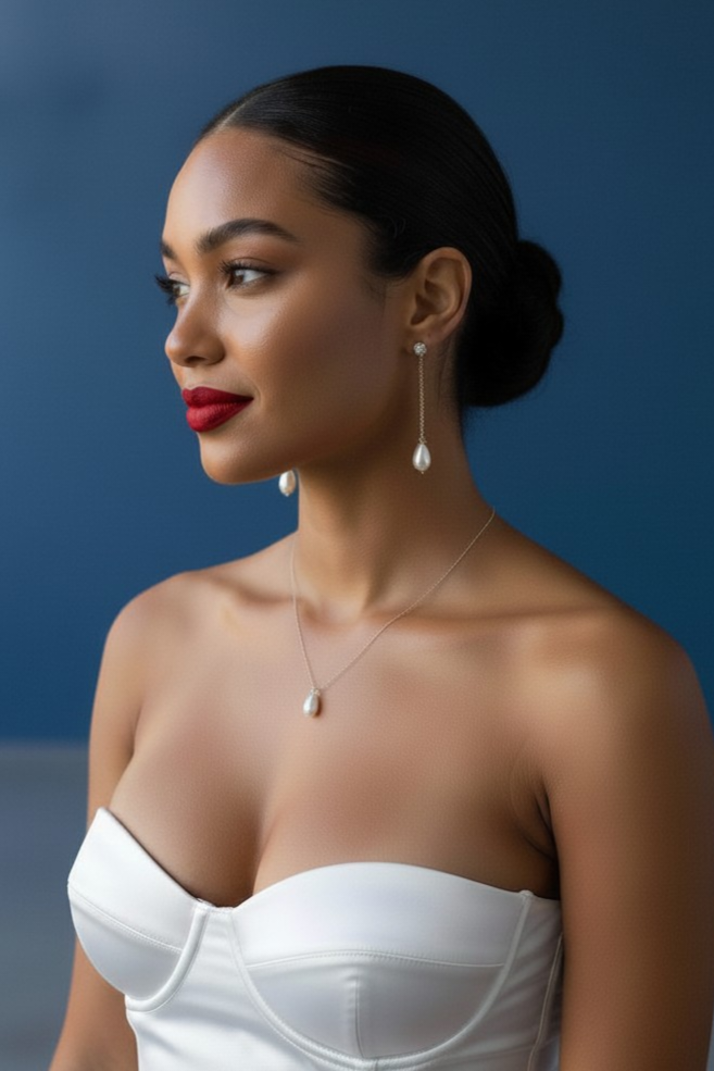 Offrez à votre tenue de mariage une touche d’élégance intemporelle avec cette parure de mariée trois pièces composée de boucles d’oreilles, d’un collier et d’un bracelet assorti.